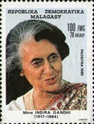 Indira Priyadarshini Gandhi (19 November 1917 – 31 October 1984) was the third Prime Minister of India and a central figure of the Indian National Congress party. Gandhi, who served from 1966 to 1977 and then again from 1980 until her assassination in 1984, is the second-longest-serving Prime Minister of India and the only woman to hold the office.