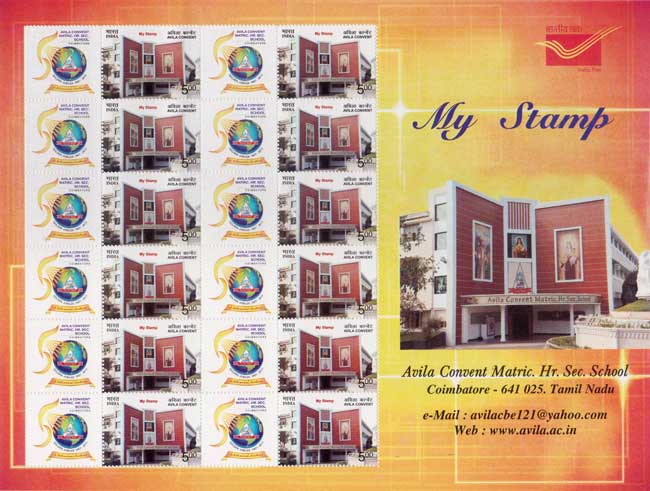 | 22.03.2016 | Avila Convent Matric. Hr. Sec. School, Coimbatore My Stamp words incorporated in Stamp Design / Logo of Golden Jubilee celebration of School pre-printed on the tab. Customised - 04 Security Printing Press, Hyderabad | Rs. 5