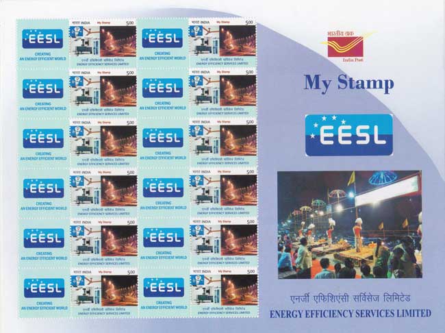 | 10.02.2017 | Energy Efficency Services Limited Stamp design depicts lighting on road and electrical gadgets / My Stamp words incorporated in Stamp Design / Logo of EESL is pre-printed on the tab. Customised - 20 Security Printing Press, Hyderabad | Rs. 5 Rs. 500 per Sheetlet of 12 Stamps sold at ePost Office Portal with Presentation pack. | Electricity, Electrical Gadgets, Light, Fan, | |