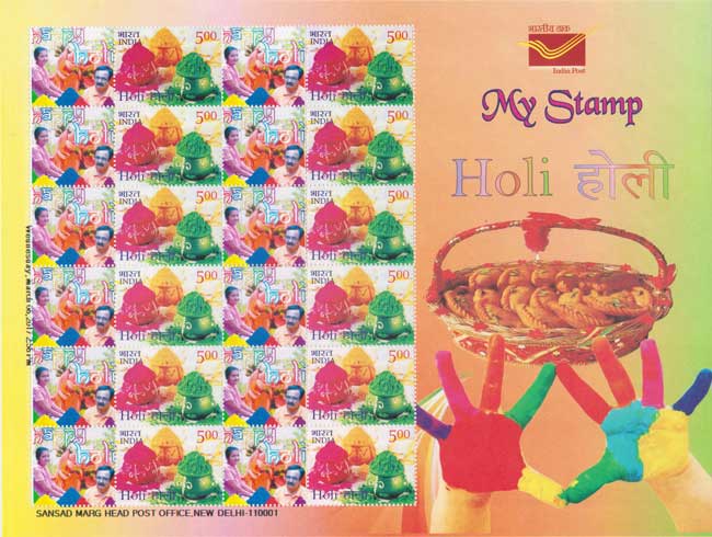 | 03.03.2017 | Holi Personalised - 47 Security Printing Press, Hyderabad | Rs. 5 Rs. 300 per Sheetlet of 12 Stamps. | Colours, Holi festival | |