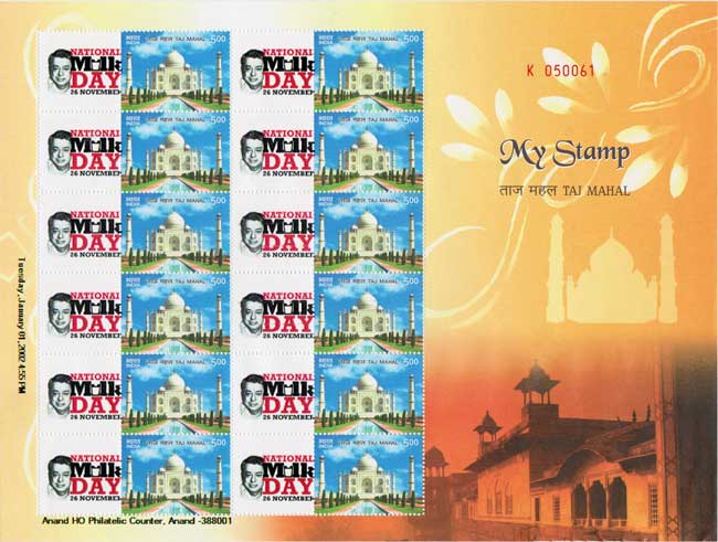 | 12.02.2011 | Tajmahal Personalised - 13 India Security Press, Nasik | Rs. 5 Rs. 150 per Sheetlet of 12 Stamps. Since Sept 2011 at Rs. 300 per Sheetlet of 12 Stamps | Tajmahal, Monument, Tomb, Architecture, Archaeology, UNESCO World Heritage Site | |