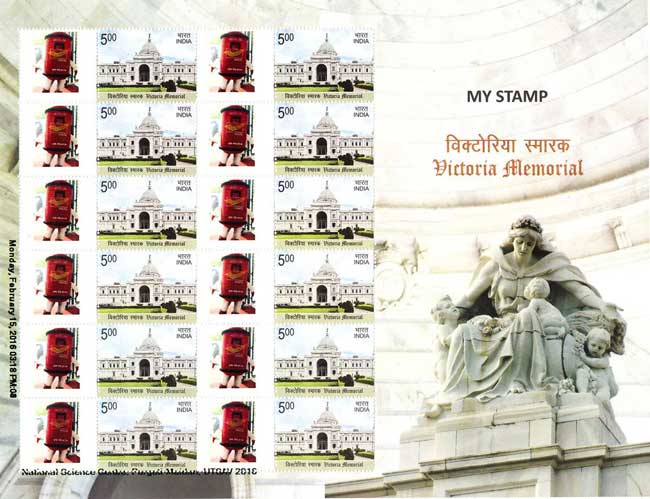 | 15.02.2016 | Victoria Memorial Personalised - 36 Security Printing Press, Hyderabad | Rs. 5 Rs. 300 per Sheetlet of 12 Stamps. | Building, Architecture | |