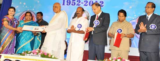 His Excellency Dr. K.Rosaiah, Governor of Tamil Nadu released the Special Cover at the Diamond Jubilee Celebrations of the Madras School of Social Work at Chennai (27.2.13). Dr. Fathima Vasanth, Principal cum Secretary, MSSW received the Special Cover. Smt. Shanthi Nair, Chief Postmaster General presented the Special Cover to Governor. Hon'ble Minister for Higher Education Thiru P.Palaniappan, Dr.G.Viswanathan Founder Chancellor, VIT, Prof K.N.George Former Director, MSSW Shri A.Loyola, Secretary, Society for Social Education and Research Shri C.D. Jose President, SSER, MSSW were also present.
